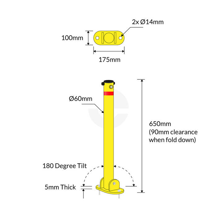 The Bollard Fold Down Parking is easily installed by securing the base to a concrete or asphalt surface. Using the provided keys the bollard can be secured upright to deter illegal parking or laid flat for vehicles to pass over.