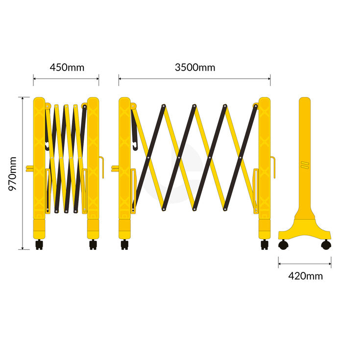 Enforcer Expandable Safety Barrier Plastic 3500mm With Wheels can expand to an impressive 3.5m long. Its plastic construction mounted on quality wheels make it easy to move and secure in position. Perfect for a variety of uses including to manage queues, crowds and direct pedestrian traffic around hazards.