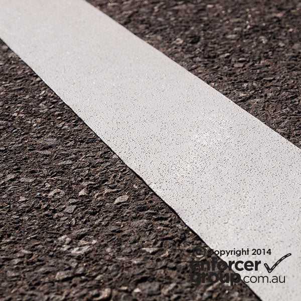 Made to perform indoors and outdoors, the line marking tape resists damage caused by weather. It features a nonslip finish and glass beads for low light visibility.