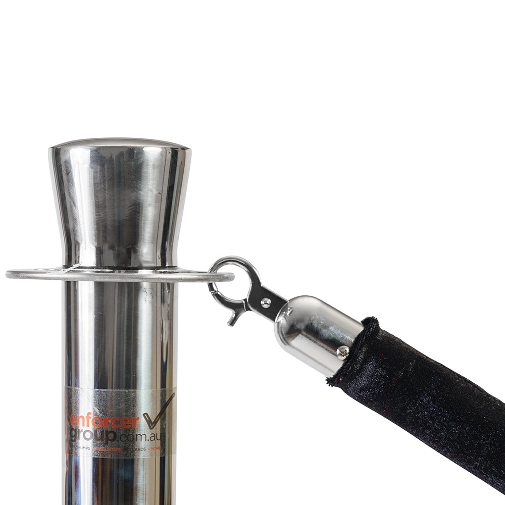 Stylish and durable, Enforcer red velvet ropes are used to attach to bollards to manage and control queues, entranceways and crowds. The rope features silver hooks to efficiently attach to our rope barrier bollards. Perfect for events, retail settings and hotels where a refined barrier is needed. The red colourway is luxurious and eye-catching, increasing awareness of boundaries.